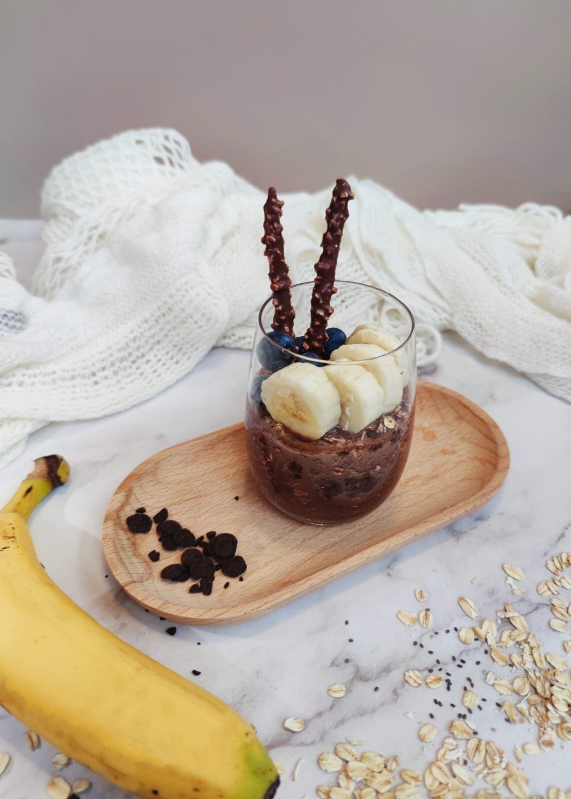 Indulge in the perfect balance of rich chocolate and sweet bananas with our CHOCO BANANA overnight oats. Made with whole rolled oats and real ingredients, it's a convenient and nutritious breakfast option. It’s an irresistible treat that brings a burst of joy and energy, ideal for pepping up your mornings or snacking any time of day.